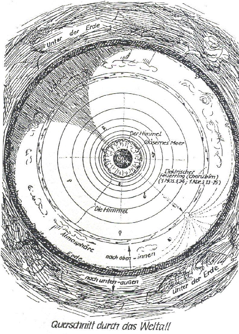 Figure 4. Braun’s Inverted Universe. Note that heaven is at the center, surrounded by the glassy sea, the planets, Sun and clouds.