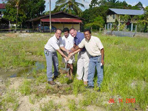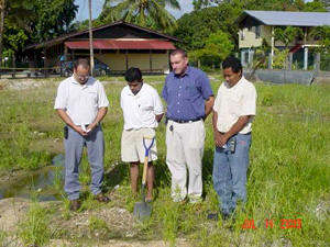 Groundbreaking begins with prayer, Perry (L), Asgar Hamid (center