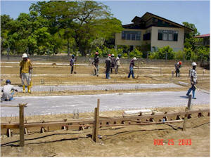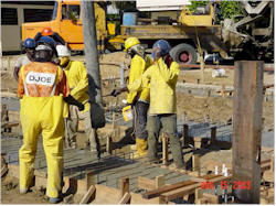 In the pictures below, a base floor is laid for the foundations upon which steel