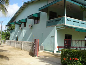 Main building seen from Loorweg (sidestreet) that divides our campus. Second story houses several classrooms, the Headmaster's office, and residences for both local staff and foreign teachers and assistants. |